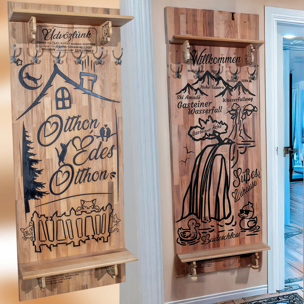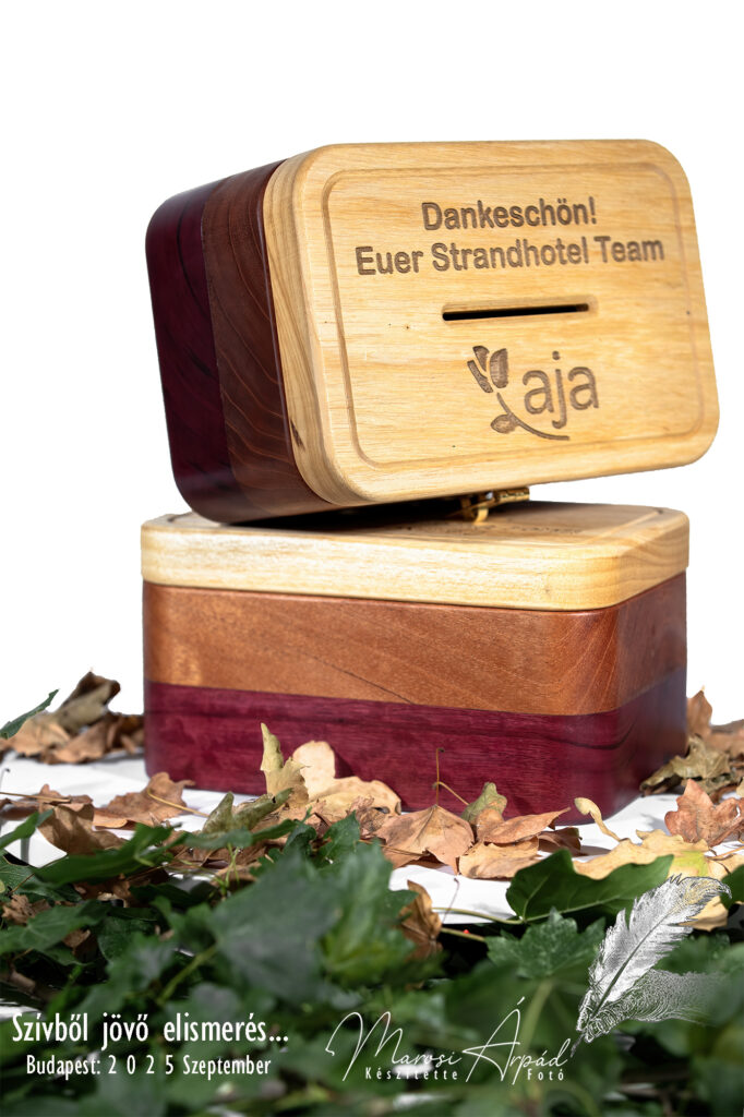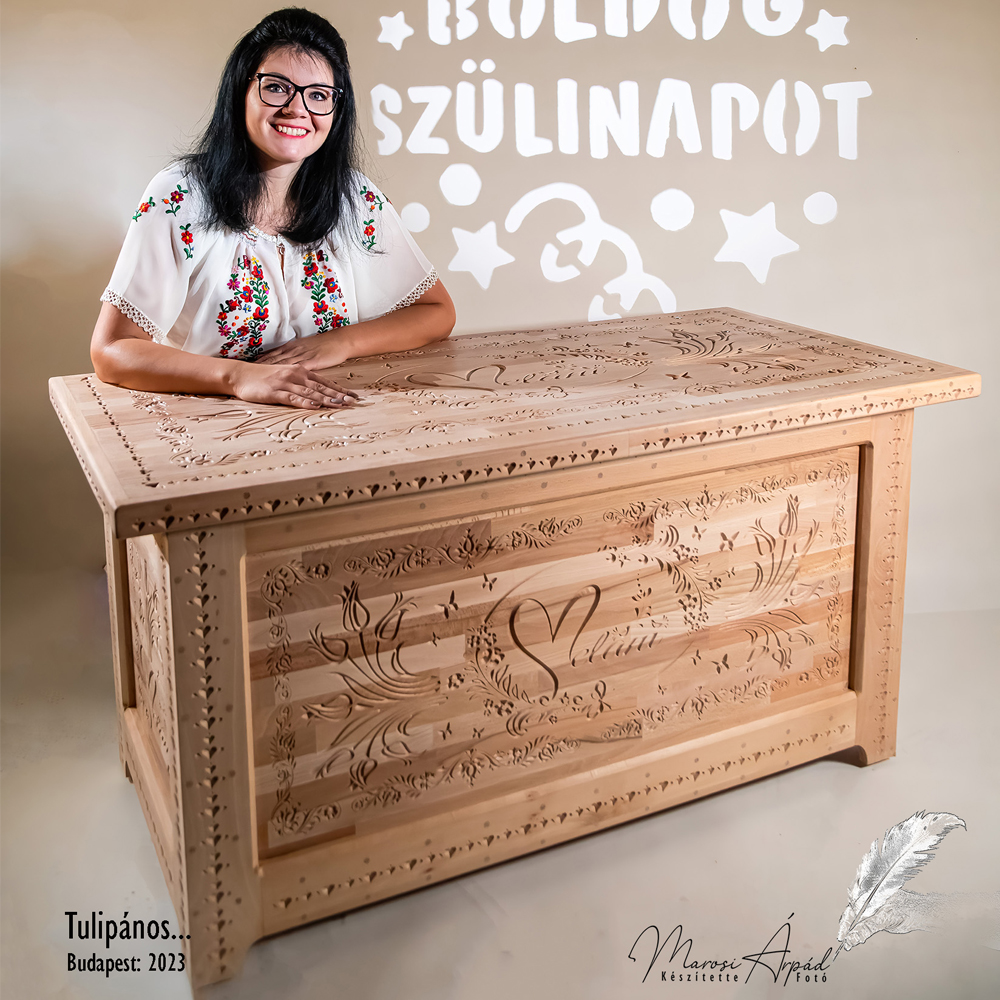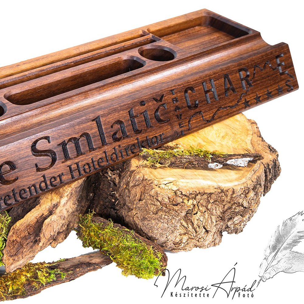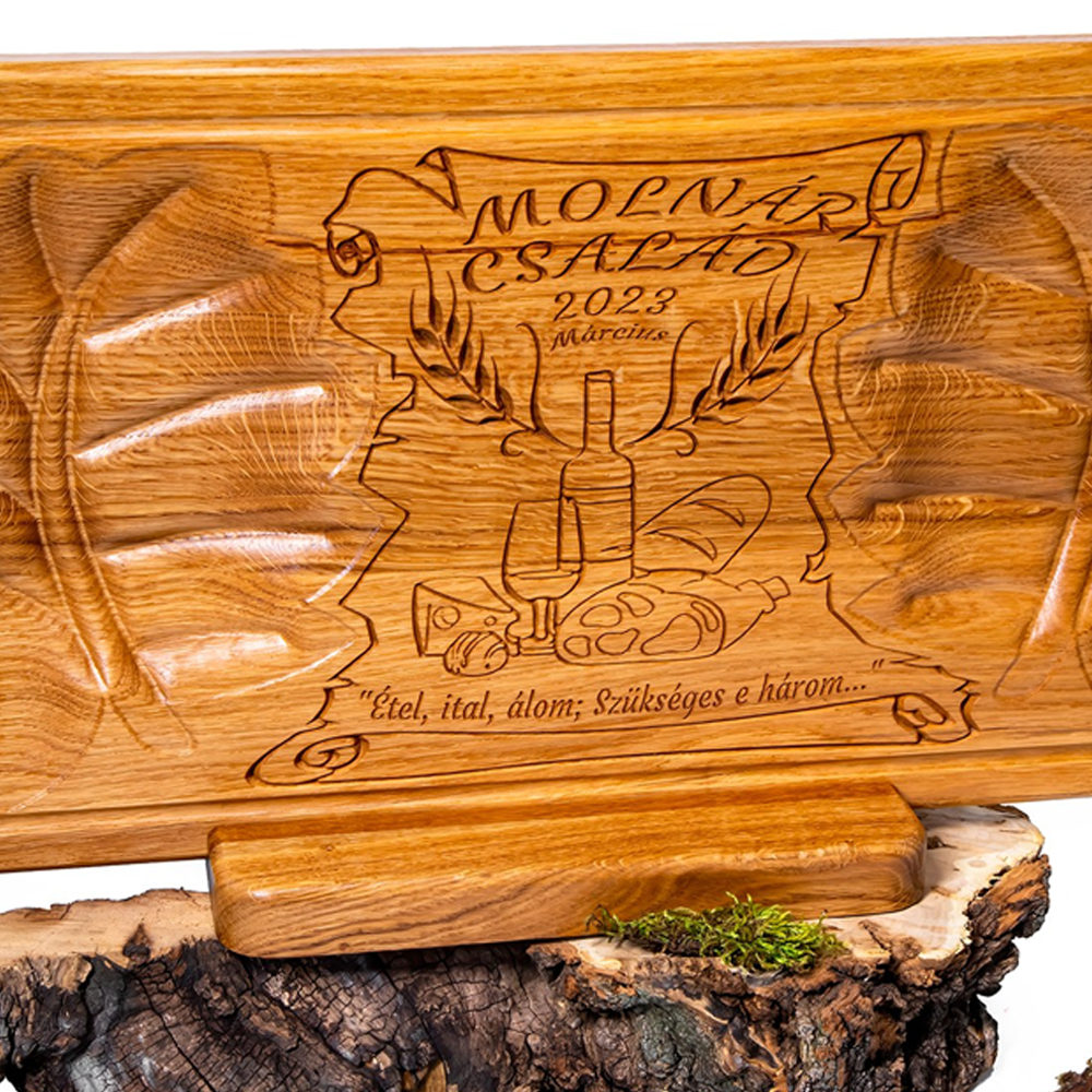 Édesapám nemcsak faanyagot választ különös gonddal – legyen az akár hazai tölgy, bükk vagy éppen egzotikus fajta –, hanem minden részletet személyesen álmodik meg. Nála semmi sem sorozatgyártás: minden apró minta, gravírozott üzenet és forma úgy készül, hogy igazodjon ahhoz, akihez végül az emlékőrző kerül. Így minden egyes alkotás igazi kis csoda: benne van a természet ereje, apu figyelme, türelme – és persze egy kis szeretet is, pont úgy, ahogy csak ő tudja készíteni.
