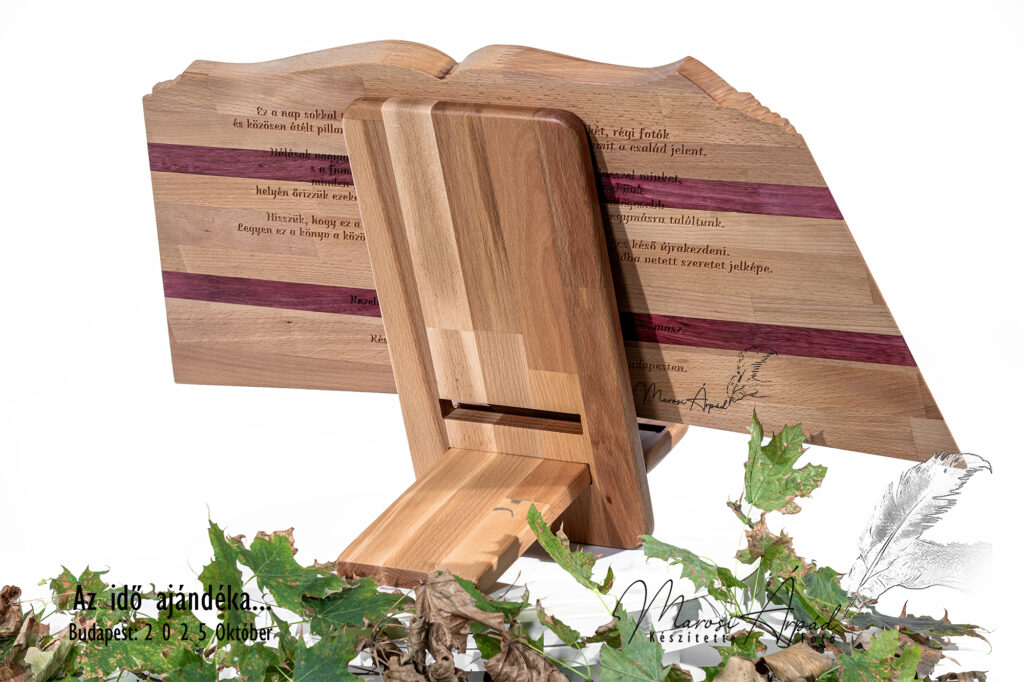 Minden könyv tömör keményfából készül, akár egyféle, akár többféle – olykor egzotikus – faanyag kombinálásával, amely különleges, változatos szín- és szerkezetvilágot teremt. A domborműves megmunkálás, intarzia berakás és egyedi gravírozás teszi igazán egyedivé és személyessé ezeket az alkotásokat. Méltán lehetnek családi ünnepek, évfordulók, baráti összejövetelek vagy fontos hétköznapok kedvenc kincsei.