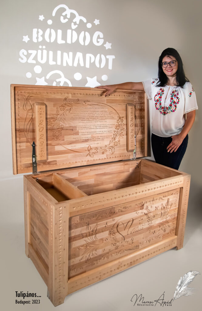 Így alakult ki édesapám varázsdoboz-története, aminek koronája az én tulipánosládám lett, és azóta is számtalan emlékőrző alkotás került ki a kezei közül – olyan művek, melyek a szíveket érintik meg és lelkeket simogatnak, emlékeket zárnak be és őriznek meg emberöltőnyi időkre.